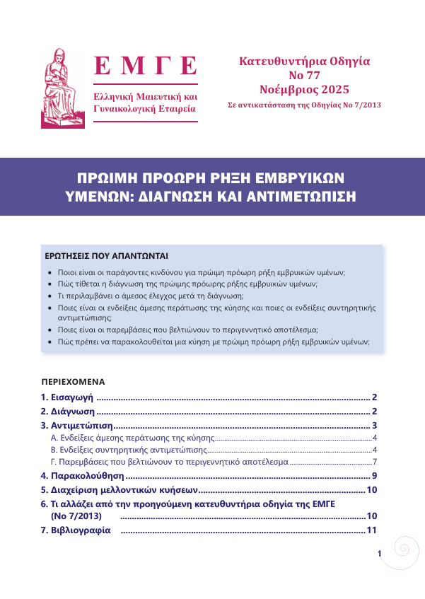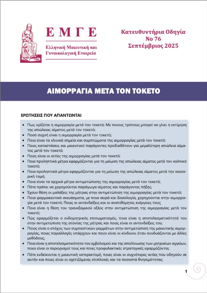 Οι κατευθυντήριες οδηγίες που αναρτώνται στην επίσημη ιστοσελίδα της Ελληνικής Μαιευτικής και Γυναικολογικής Εταιρείας.
